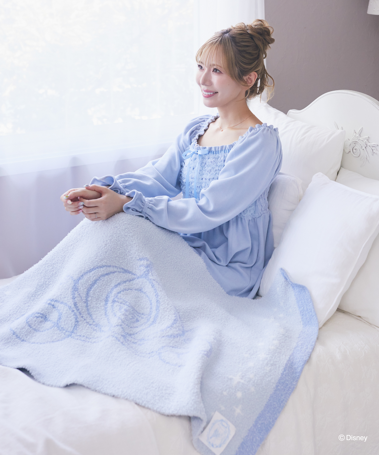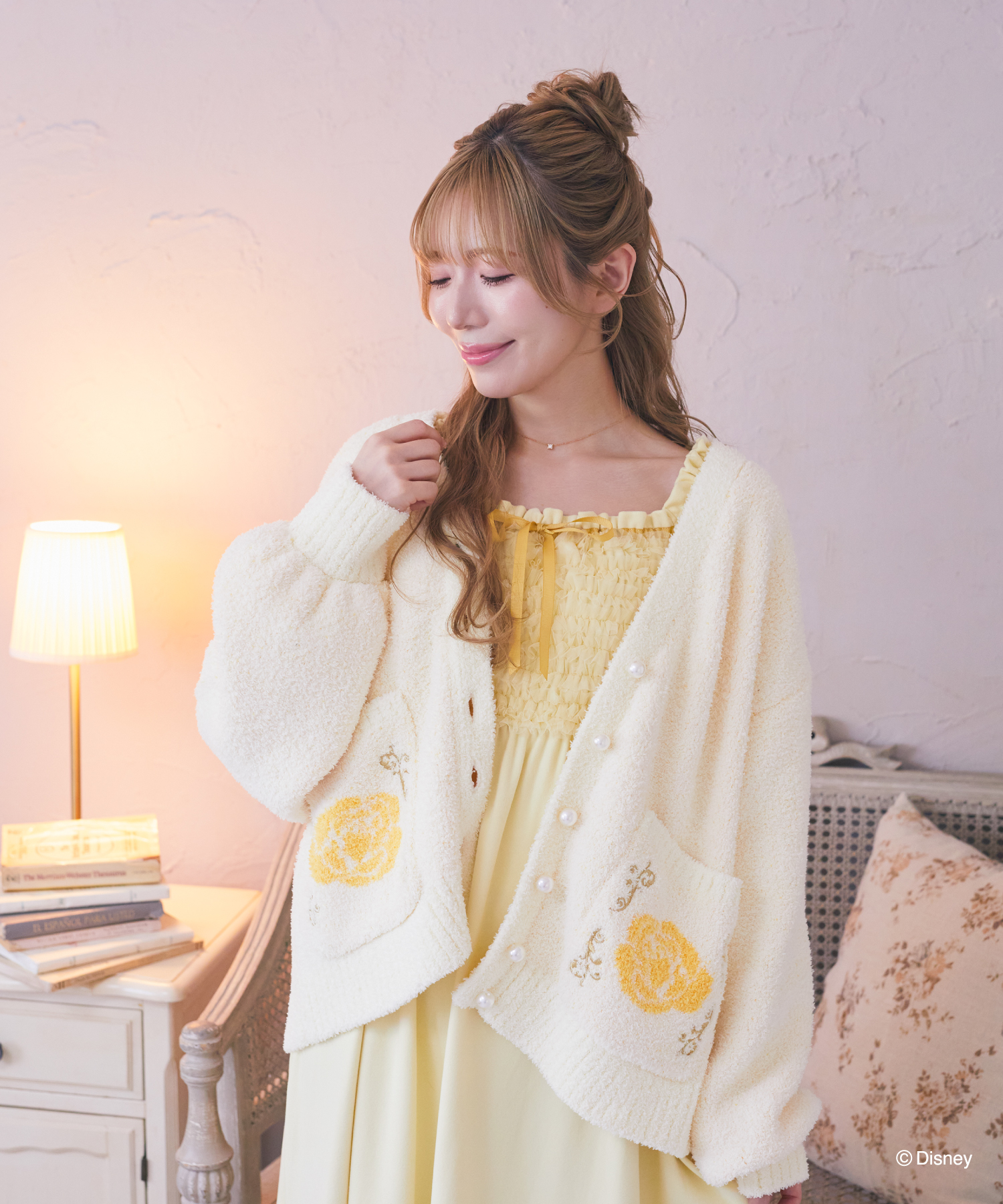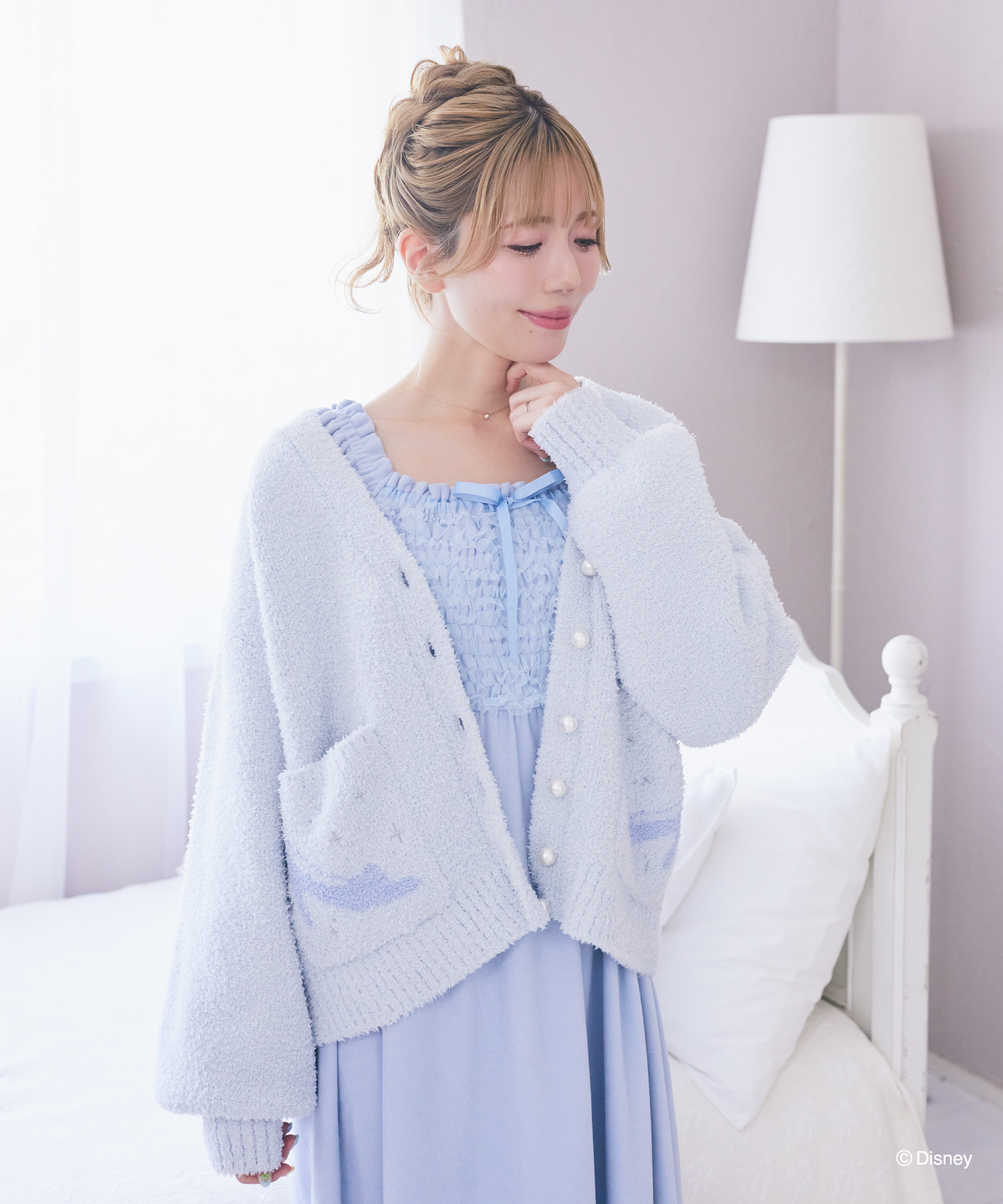 「ディズニープリンセス」からは、「シンデレラ」「ラプンツェル」「ベル」をイメージしたワンピース、カーディガン、ブランケットをラインアップ。しっとりとした肌触りでとろみのある生地を使用したワンピースは、体を優しく包み込み、ネグリジェのような雰囲気に仕上げました。大きめのパールボタンが華やかなカーディガンとニットブランケットには、思わず触りたくなるもちっとしたニット生地を使用。各アイテムには、物語を象徴するモチーフをあしらい、プリンセスたちの世界観を表現しました。