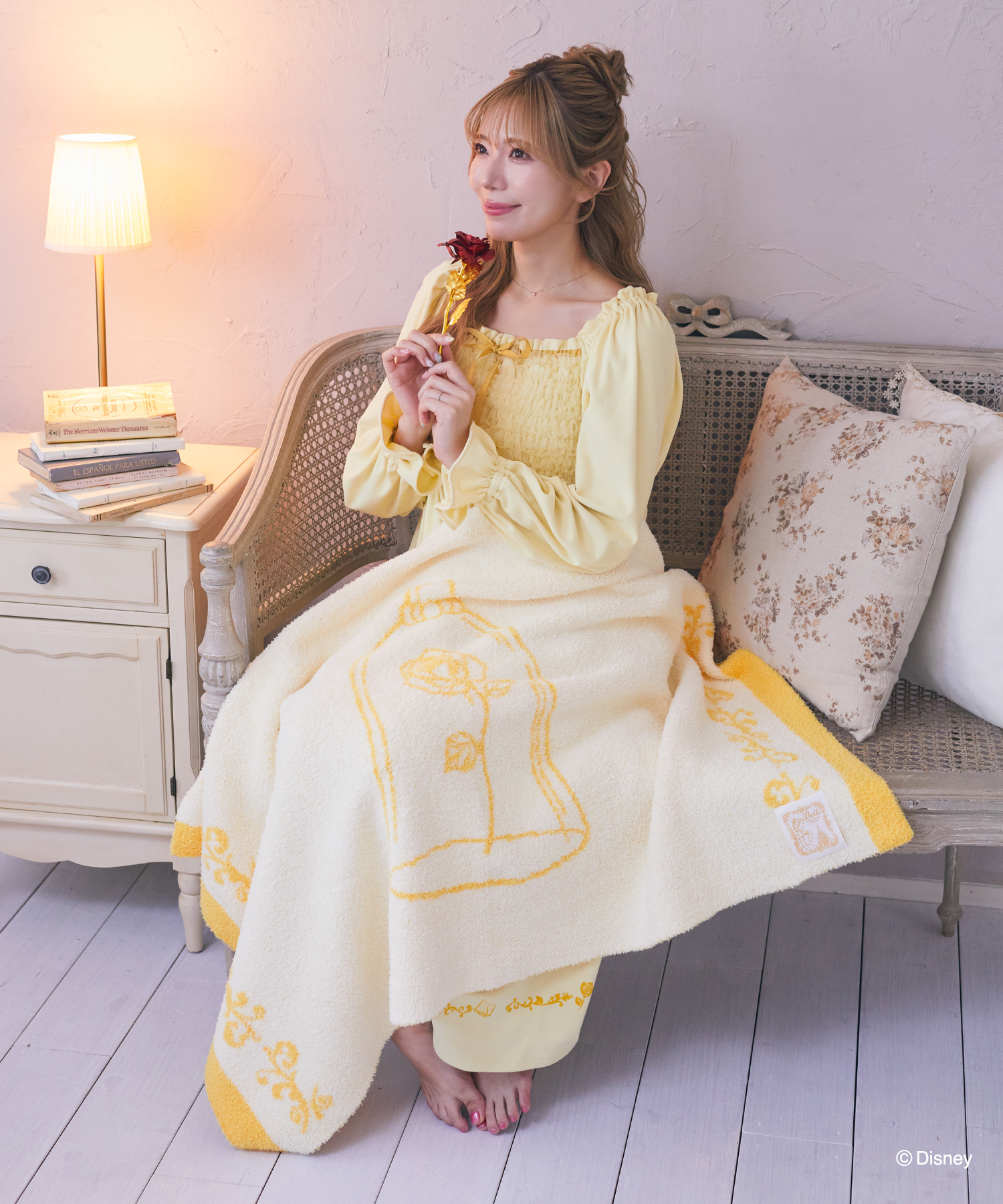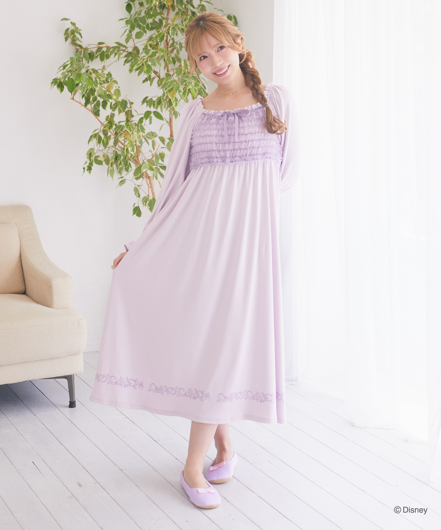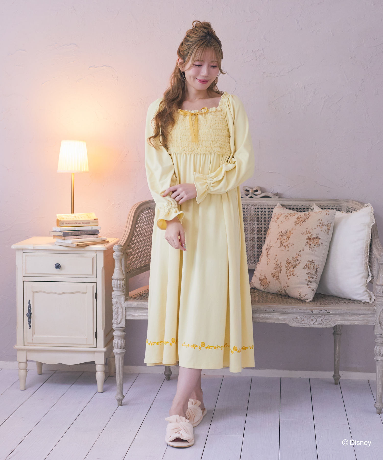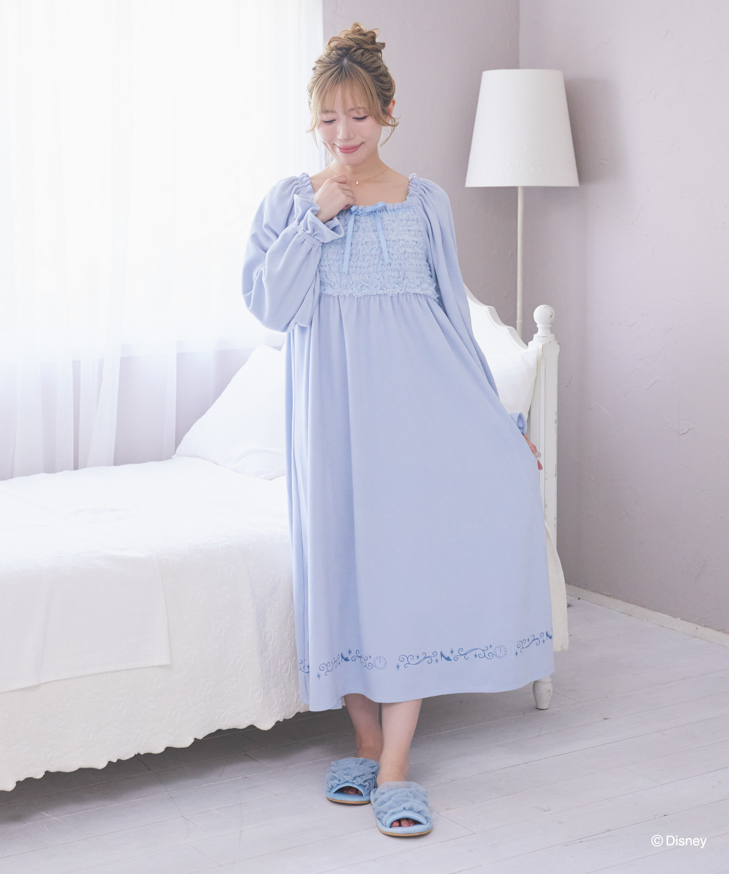 「ディズニープリンセス」からは、「シンデレラ」「ラプンツェル」「ベル」をイメージしたワンピース、カーディガン、ブランケットをラインアップ。しっとりとした肌触りでとろみのある生地を使用したワンピースは、体を優しく包み込み、ネグリジェのような雰囲気に仕上げました。大きめのパールボタンが華やかなカーディガンとニットブランケットには、思わず触りたくなるもちっとしたニット生地を使用。各アイテムには、物語を象徴するモチーフをあしらい、プリンセスたちの世界観を表現しました。