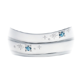 シンデレラの夢を叶えた魔法。キラキラと輝く魔法の軌道をイメージし、奇跡の瞬間を美しい流線とダイヤモンドで表現したリング。2本のマリッジリング内側のキラキラ刻印を合わせると、ブルートパーズと共に魔法のキラキラがつながります。