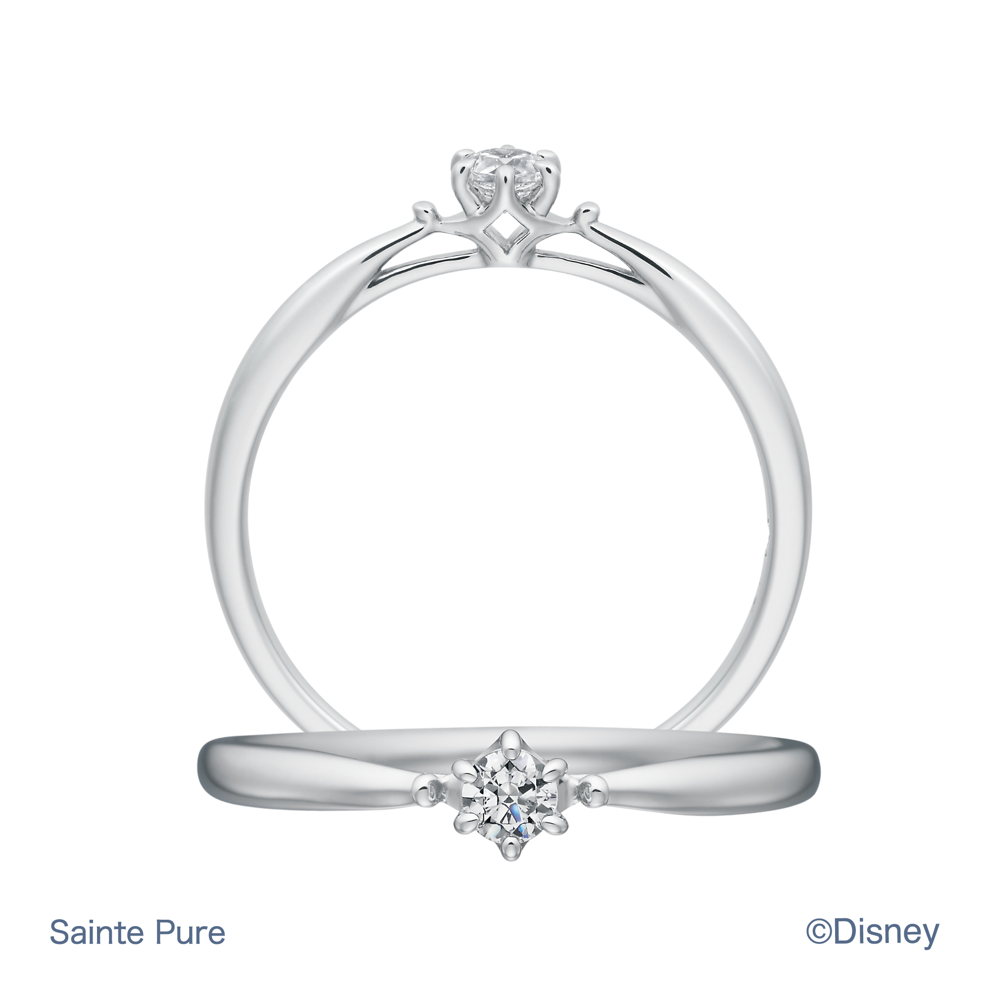 エンゲージリングは、シンデレラ城の建築造形をイメージし、柱が立っているかのようにデザインされた石座側面の美しさが魅力です。12時の鐘が鳴り響く中、シンデレラが駆け下りるお城の階段や、ドレスがなびく様子を表現したマリッジリングも華やかです。