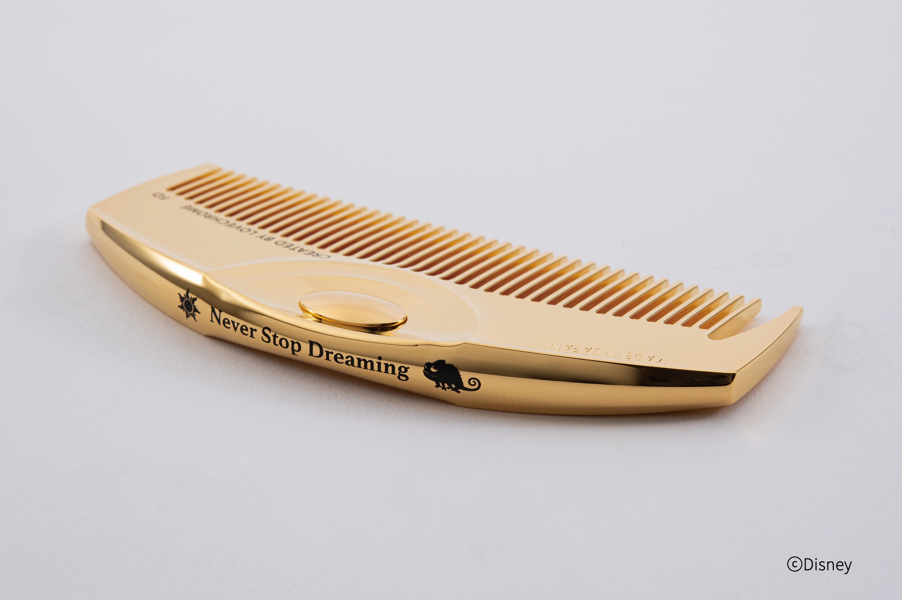 パッケージには、作品内に登場する「ラプンツェル」と「フリン・ライダー」が年に一度のランタンフェスティバルへと向かい「今までで最高の日」を過ごすシーンが描かれている。コーム側面には、ラプンツェルの大親友「パスカル」のシルエットや「Never Stop Dreaming(夢をあきらめないで)」のコピー入り。