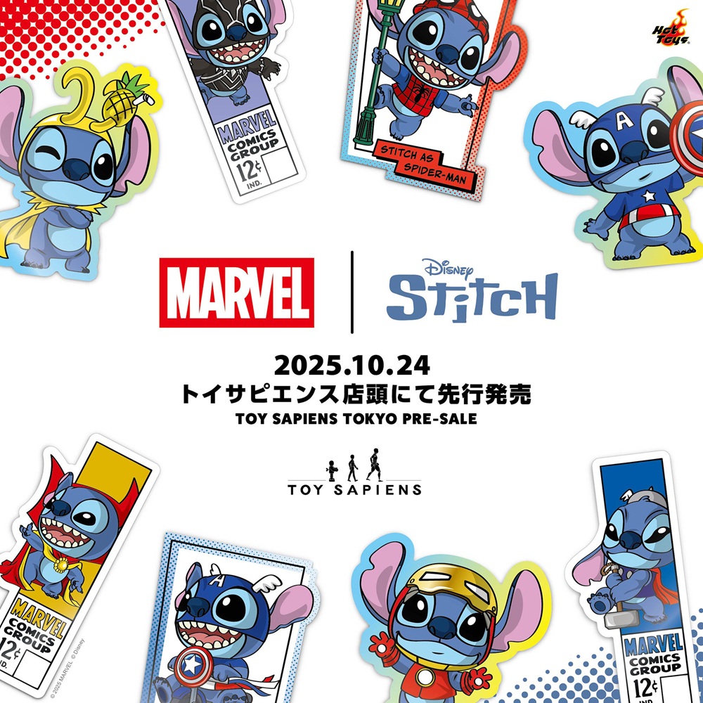 この度、ホットトイズ25周年記念アイテムとして、『マーベル|スティッチ』シリーズを発表いたしました。本シリーズは、スティッチがマーベルの人気キャラクターとマッシュアップした、ホットトイズ限定デザインとなります。ホットトイズのデフォルメフィギュア「コスビ」ほか、同デザインをモチーフとしたぬいぐるみキーチェーン、ステーショナリー、アパレルなど、幅広いアイテムがラインナップしています。10月24(金)より、ホットトイズのフラッグシップ・ストア「トイサピエンス」店頭にて先行販売予定です。(その他の流通についての詳細は、決まり次第発表いたします)