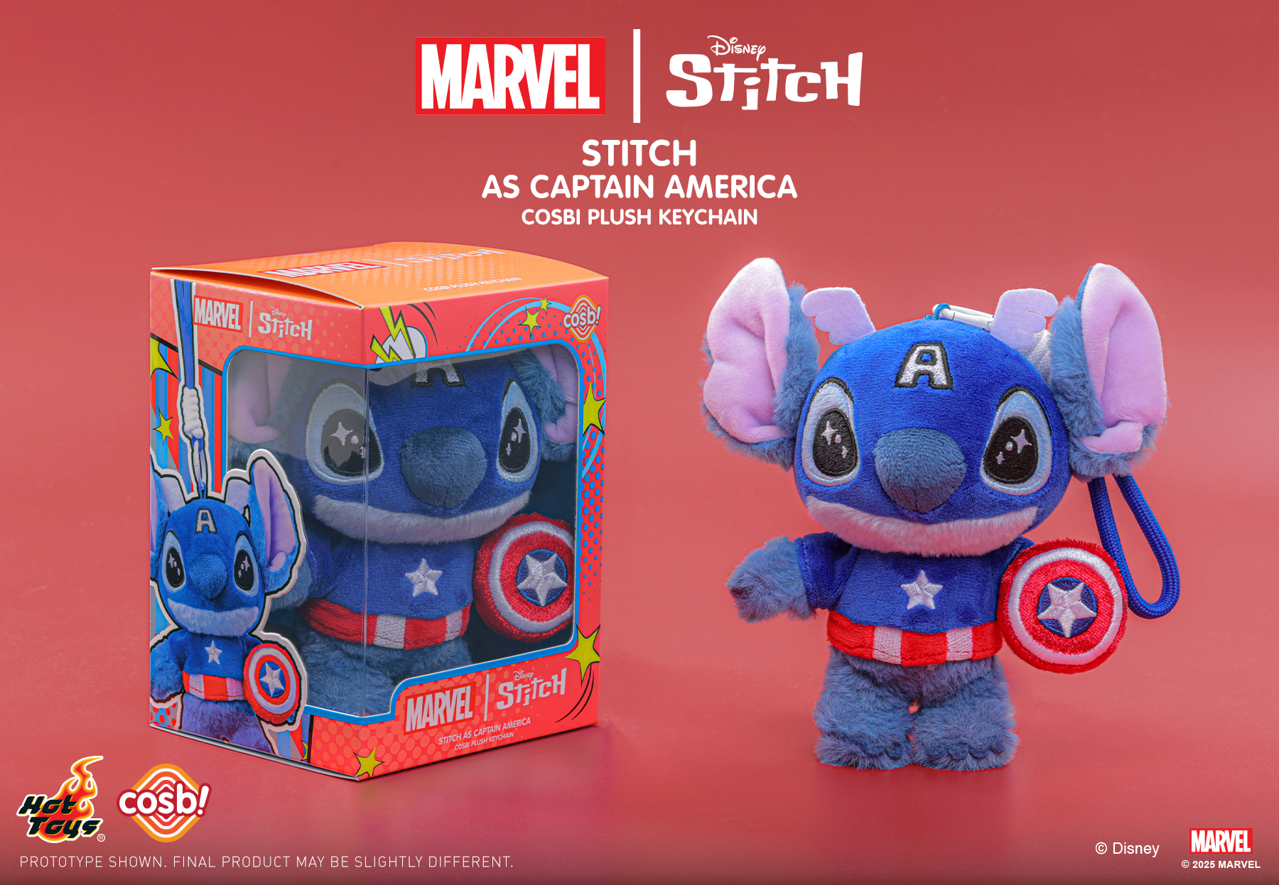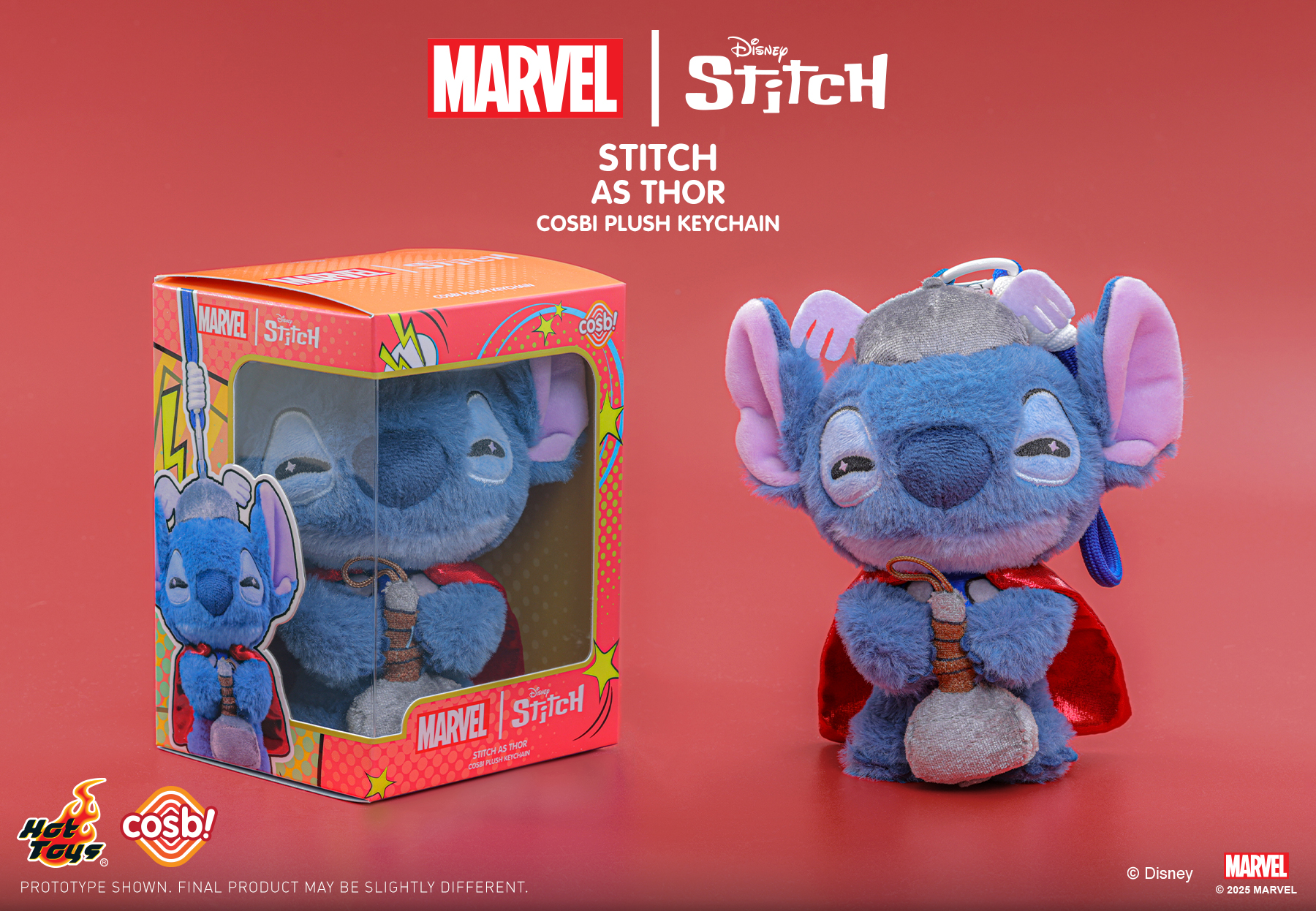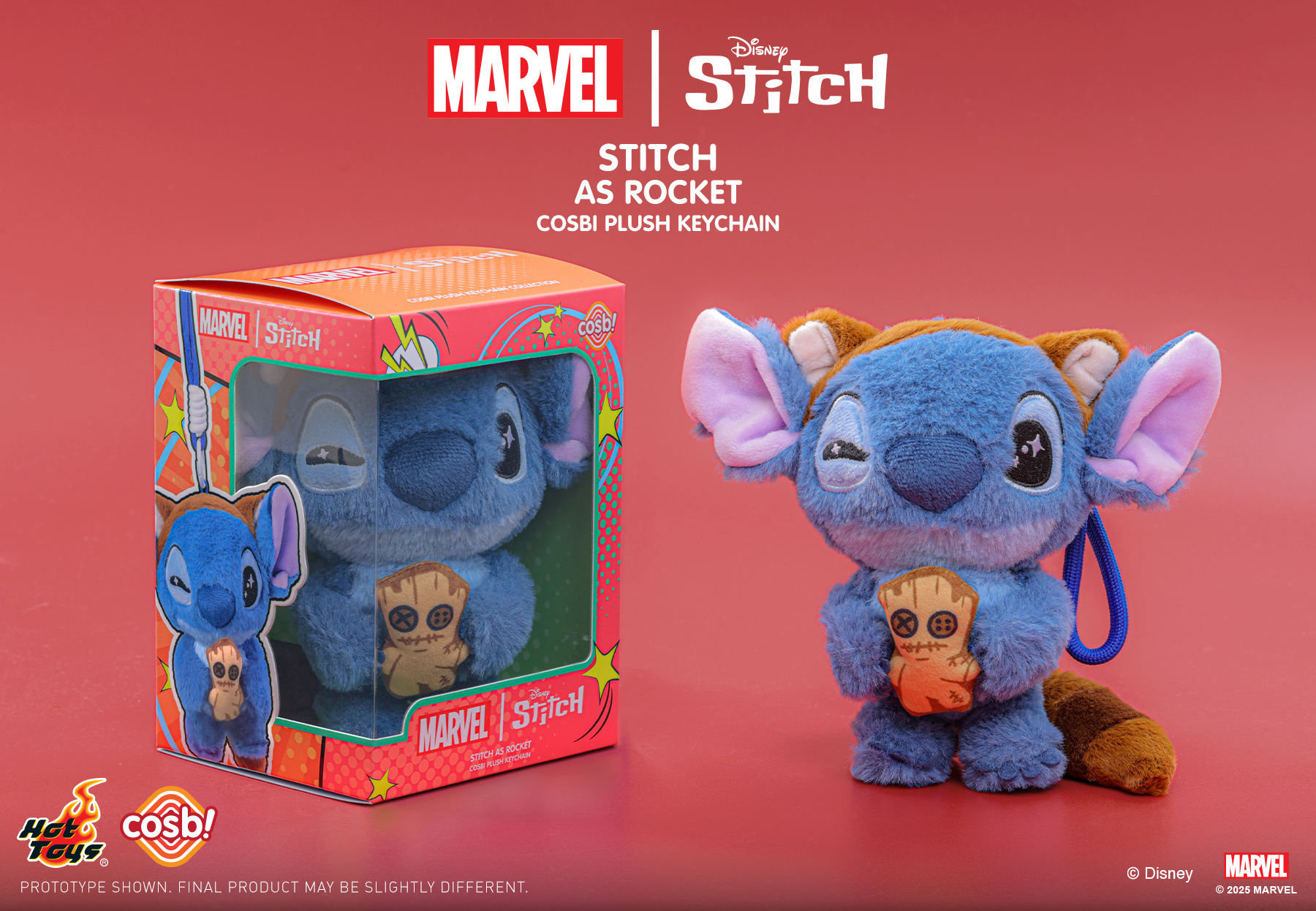 ホットトイズのデフォルメフィギュア「コスビ」シリーズをモチーフに、マーベルの人気キャラクターとマッシュアップした、ホットトイズ限定デザインのスティッチがぬいぐるみになって登場!