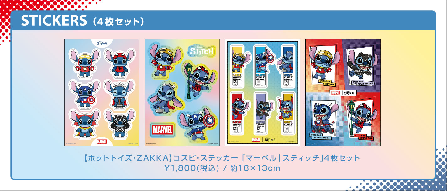 【ホットトイズ・ZAKKA】『マーベル|スティッチ』コスビ・キーチェーン/コスビ・ステッカー/コスビ・ポストカード/コスビ・クリアファイル