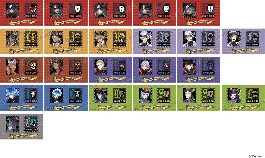 開催内容:『ディズニー ツイステッドワンダーランド』関連のグッズをご購入・ご予約内金1,100円(税込)毎、書籍・オーディオ・ビジュアル商品をご購入・ご予約(内金1,100円〈税込〉以上必須)1点毎に切手風シール(全23種)を1枚プレゼント!