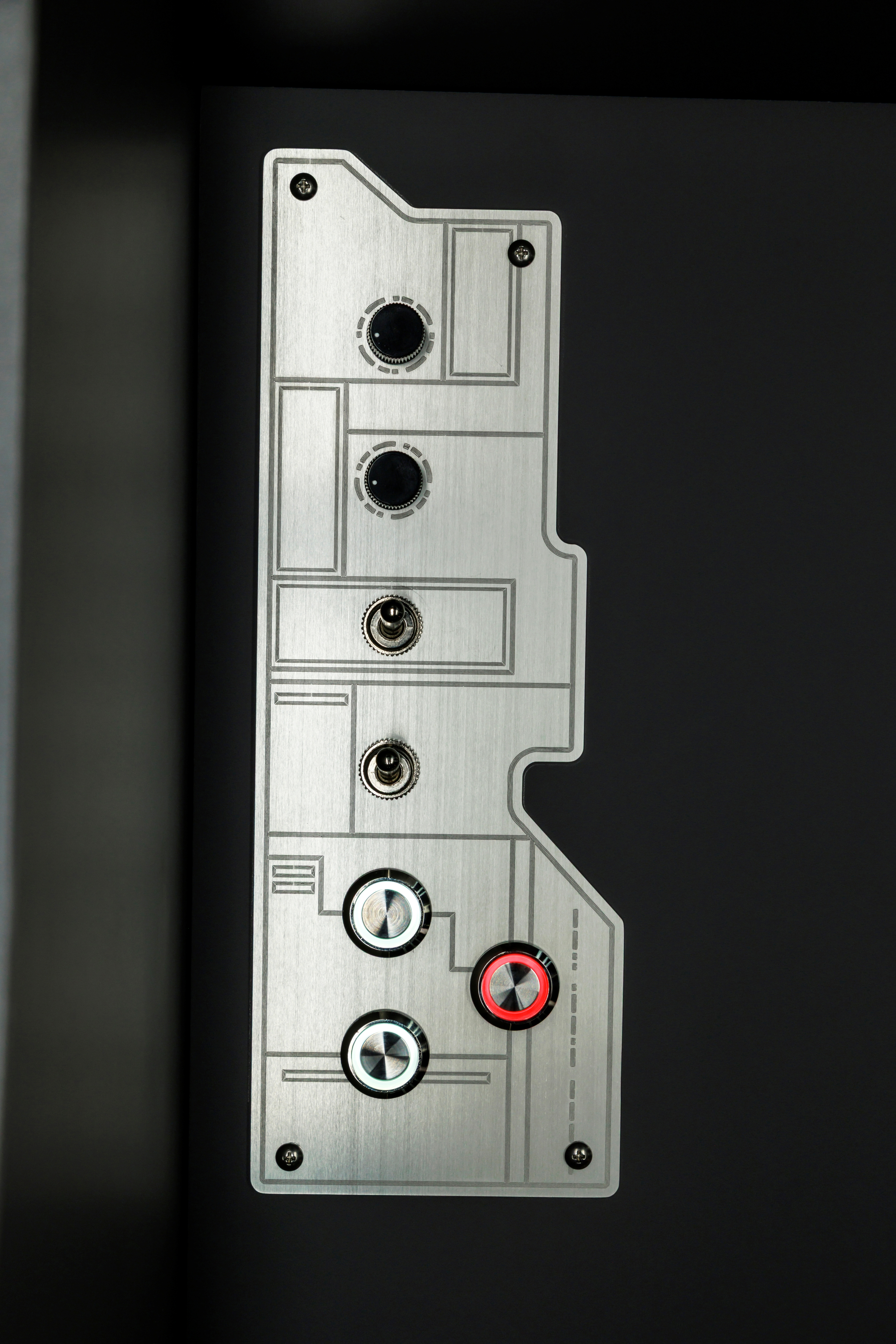 カウンター天板にある3つのスイッチを押すとライトセイバー/タイ・ファイター戦闘音/ミレニアム・ファルコンのハイパードライブ音など、9種類の公式音響がランダムに流れる音声ギミック。スイッチを押すたびに、銀河での戦闘が蘇ります。