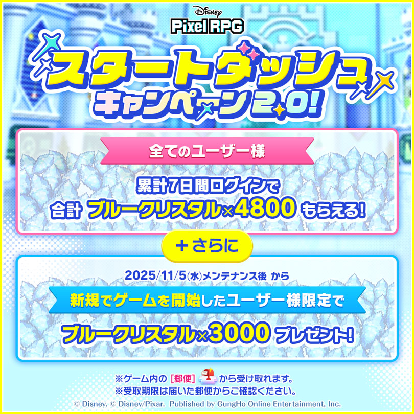 この機会にブルークリスタルをゲットし、ディズニーの仲間たちと冒険をお楽しみください。