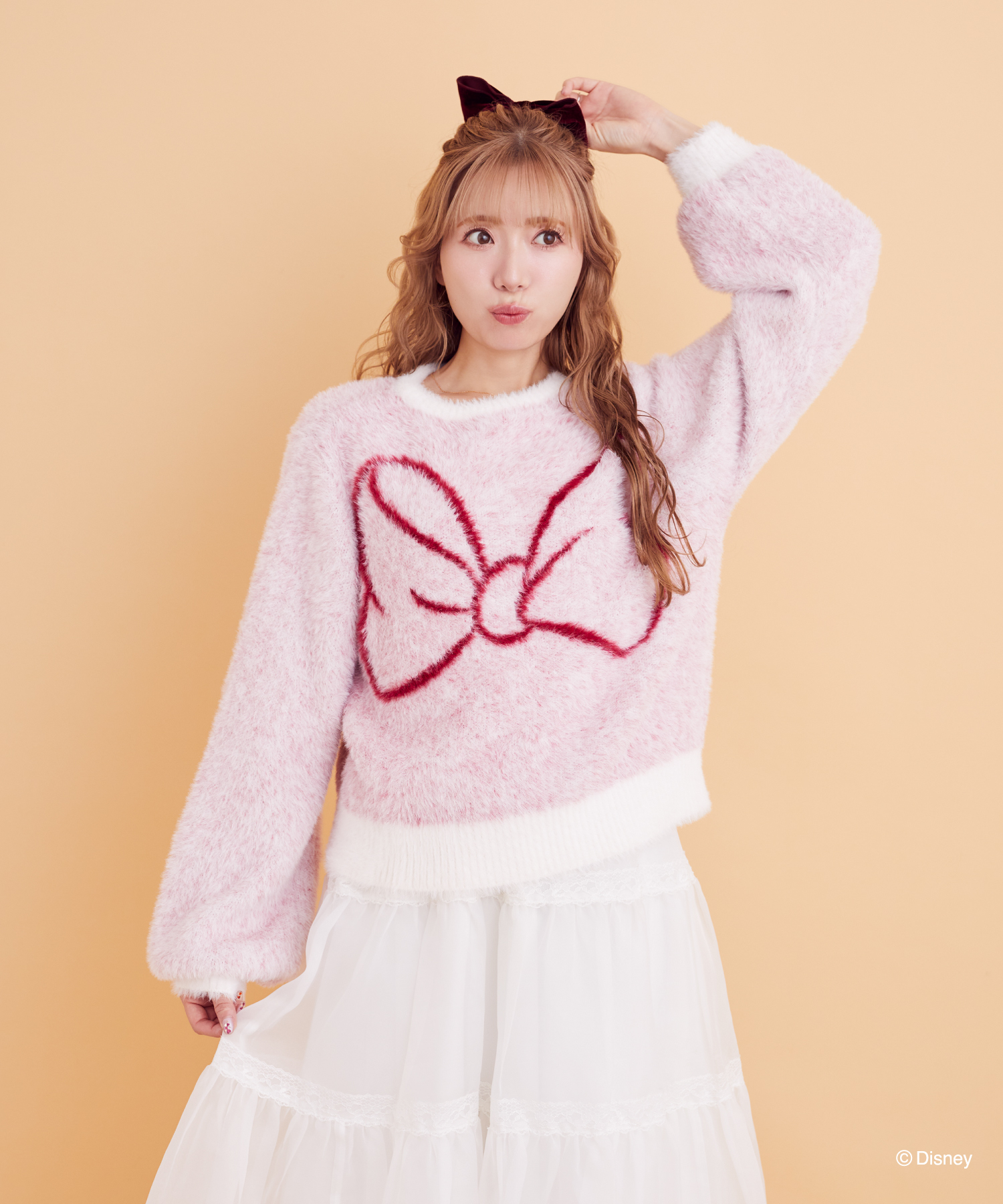 ふわふわとした肌触りのシャギーニットには、「ミニーマウス」の手書き風サインとトレードマークのリボンのアートを前後に施し、ロマンチックなムードを演出。フェイスモチーフが愛らしいパステルカラーのアーガイルニットには、レトロな表情の「ミッキーマウス」と「ミニーマウス」をダブルジャガードで編みたて表現しました。ユニセックスでゆったりとしたサイズ感ならではのレイヤードスタイルにもおすすめです。
