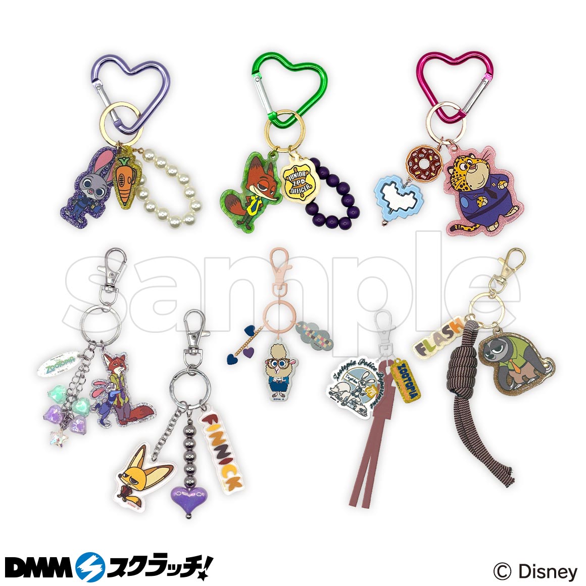 各キャラクターのイラストとモチーフチャームでデザインしたキーチェーン