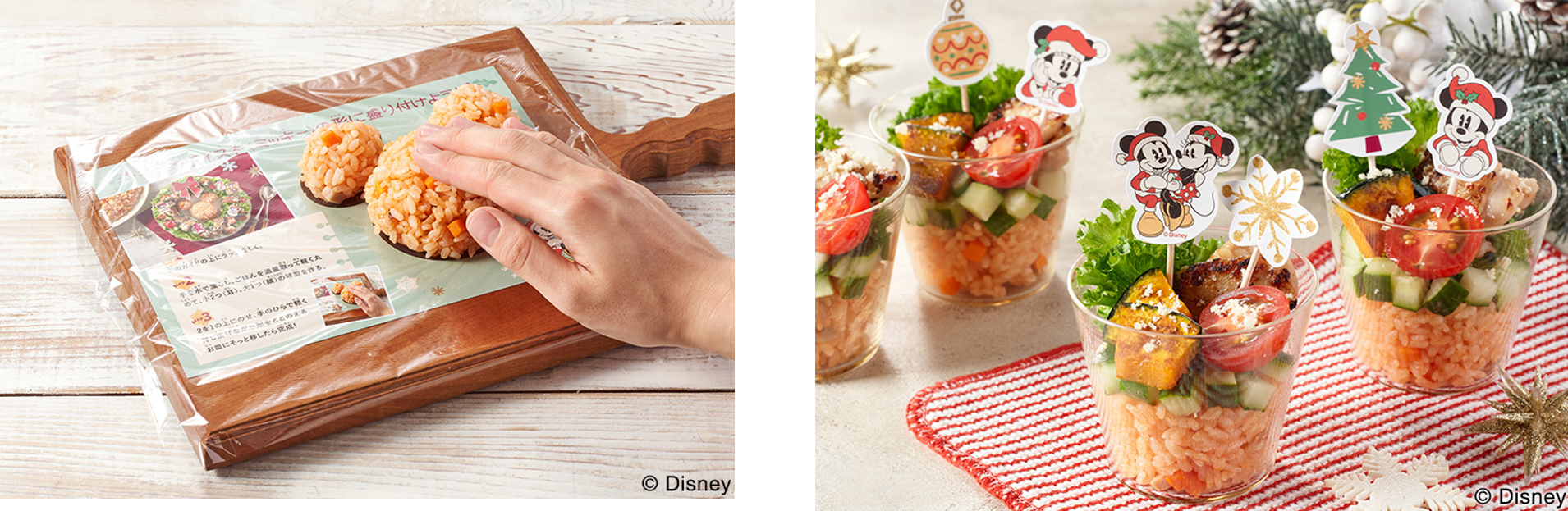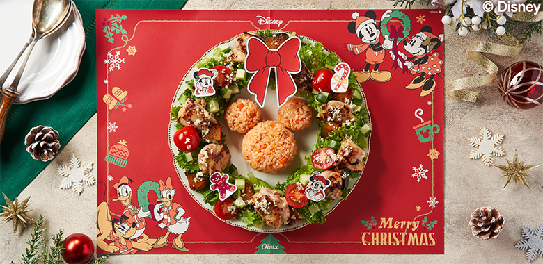 2025年12月4日(木)からは、Kit Oisix「<ミッキー&フレンズ>クリスマスサラダ」も登場。バルサミコ酢を使った大人も満足できる味わいで、ボリューム満点のチキンライスと香ばしいグリル野菜やチキンでつくるリースが目にも楽しいメニューです。食材とレシピ、キャラクターが描かれた小物などはすべてセットでお届け。レシピカードには、ご飯の盛り付けをお子さまでも失敗なく楽しめる<ミッキー>型ガイドや、カップで盛り付けるアレンジ紹介もあり、調理や盛り付けを家族で楽しめます。