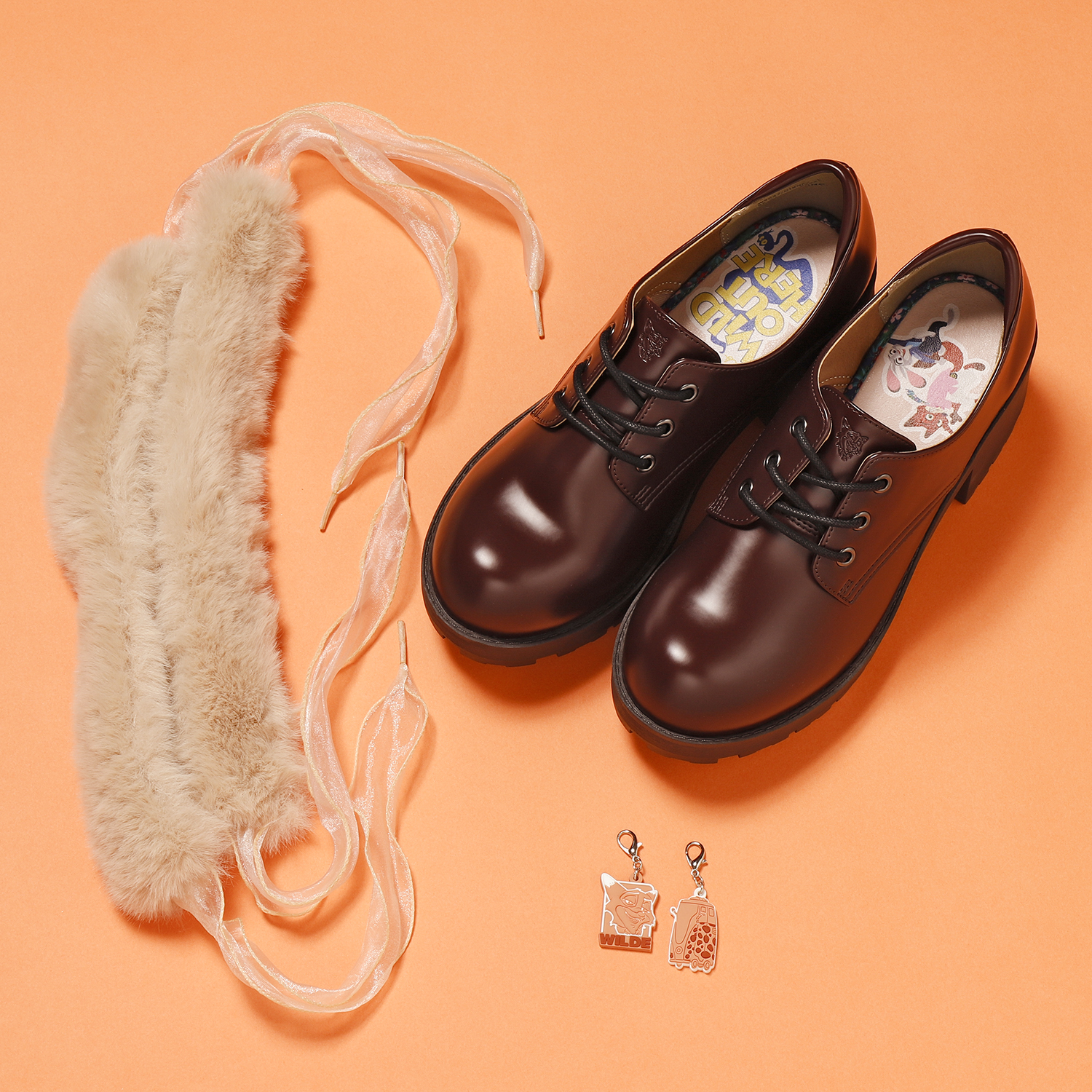 本コレクションシューズは、足もとに「ニック」と「ジュディ」の“前に進む力”を持たせるような、ふわりと揺れるファーとチャームが印象的な2種をご用意いたします。それぞれのインソールには「ニック&ジュディ」のコンビを描いた特別なプリントを採用しています。また、取り外し可能なファーやチャームは、その日の気分やファッションに合わせてお楽しみいただけます。
