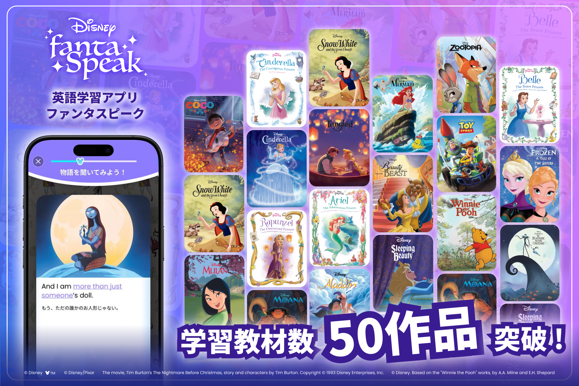 ■50作品を収録 ー ディズニーやピクサーの物語で学べる英語教材のラインアップが拡大