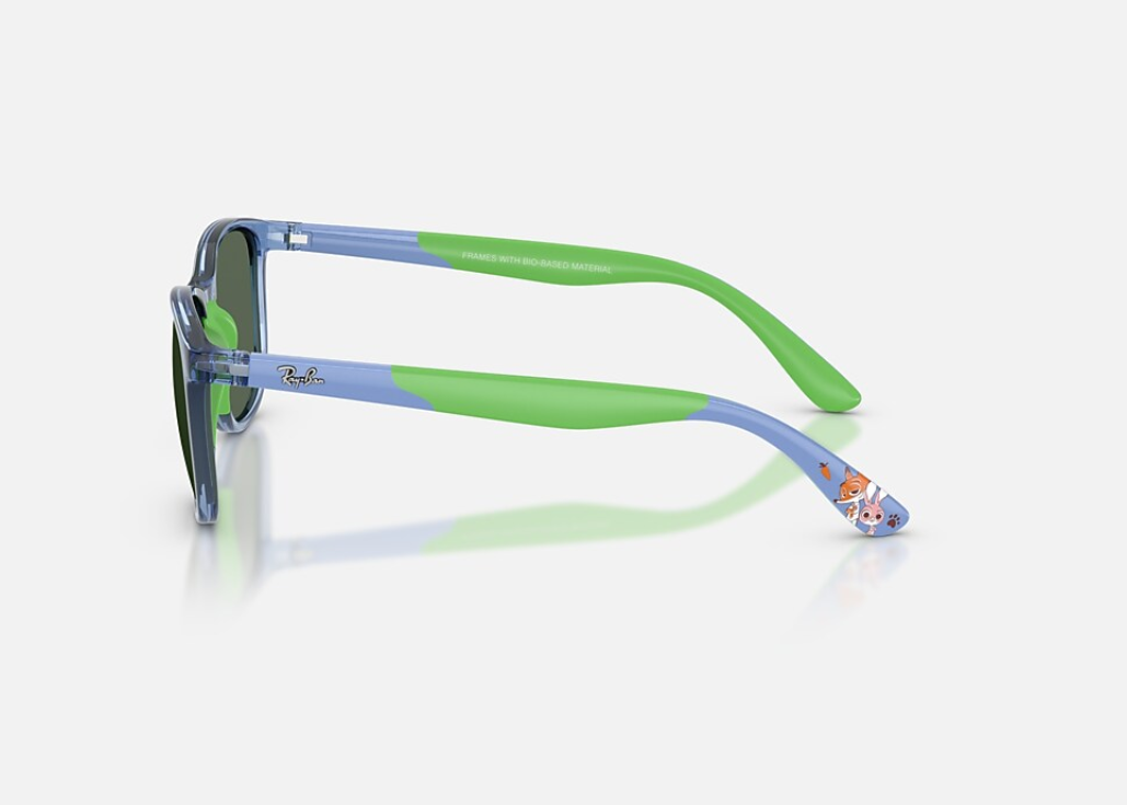 レイバン | ディズニー ズートピア2のキッズサングラスで、スポットライトを浴びるスタイルを。透明感のあるブルーのバイオベースナイロンフレームに、鮮やかなグリーンのアクセントを組み合わせ、ズートピアの遊び心あふれる世界観を表現しました。テンプルにはバイオベース素材を使用し、快適な着け心地を実現。さらに、『ズートピア2』のキャラクターグラフィックをプリントし、ディズニーならではの楽しさをプラスしています。スタイルと想像力を持って世界を探検する子どもたちにぴったりの一本です。16,500円(税込)