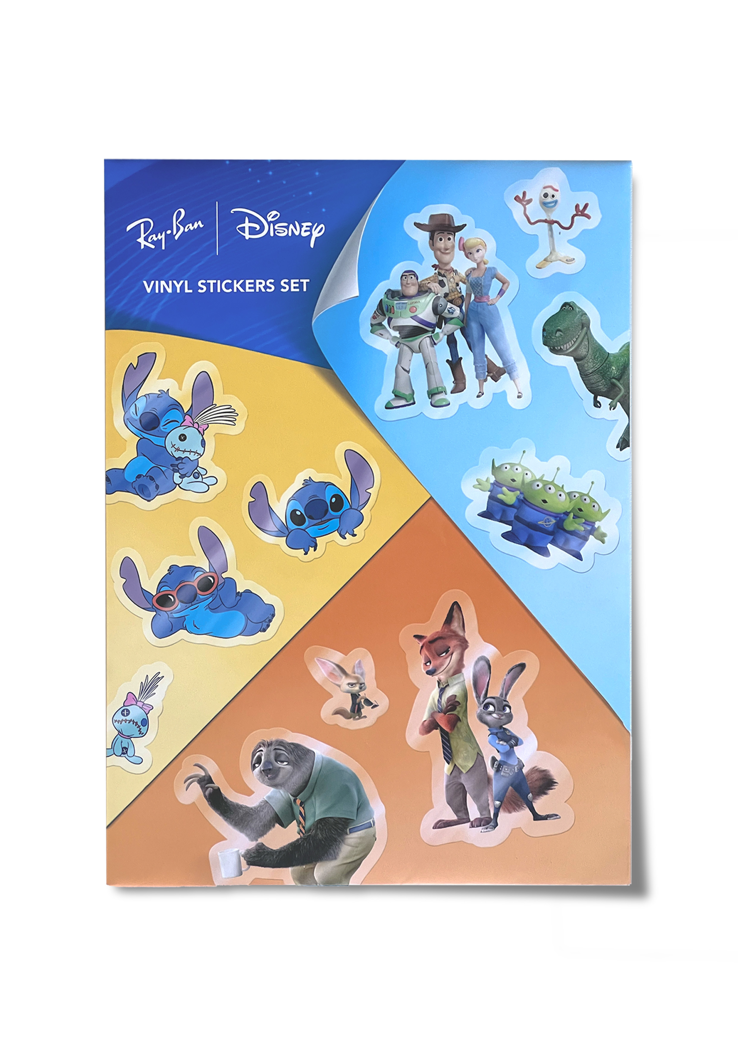 本コレクションをお買い上げいただいた方には、対象アイウェア1点につき、たっぷり使えるディズニーステッカー3枚をプレゼントします。さらに、直営レイバンストアでご購入の場合にはかわいくてどこにでも連れて行きたくなるようなポーチ付きキャラクターラゲッジタグもプレゼントいたします。(購入特典は数量限定につき、なくなり次第終了します)