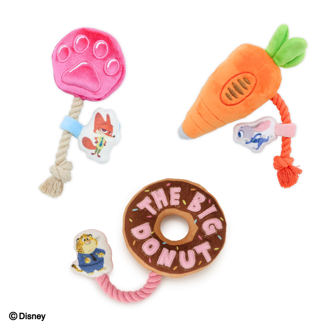 本商品は、キャラクターの世界観を愛犬と一緒に楽しめるように、ペット用アイテムに『ズートピア』のキャラクターをデザインに取り入れました。サイズ設計や素材選びにもこだわり、安心して着用・遊べるアイテムとなっています。なりきりコスチュームは伸縮性のある生地と腹開き仕様で着脱しやすく、動きやすいのが特徴です。マットとブランケットには保温性の高い中綿を使用しており、寒い日でも快適に過ごせます。さらに、おもちゃは音や動きで犬の興味を引き、引っぱり遊びを通じて飼い主さまとコミュニケーションが深まるよう設計しました。愛犬と過ごす時間がさらに楽しくなる工夫を随所に盛り込んでいます。