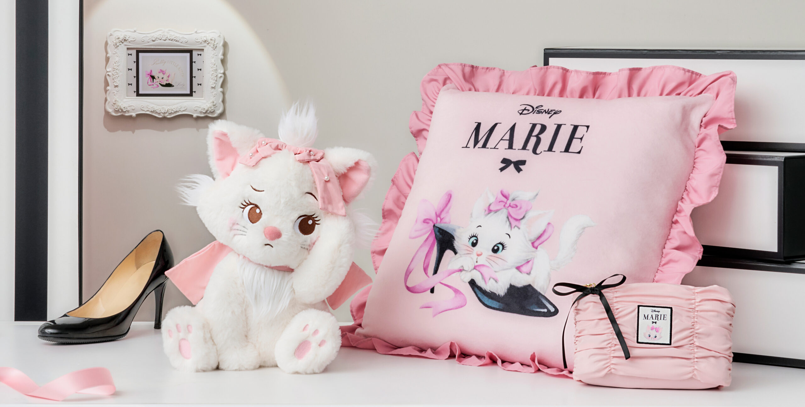 ディズニーストアから、『おしゃれキャット』公開55周年を記念した新コレクションが登場します。おしゃれに興味津々な子ネコのマリーがミュールよりもリボンに夢中になってしまうオリジナルアートを用いたアイテムを展開。リボンやチュールなどの素材を組み合わせ、マリーらしい上品でガーリーなデザインに仕上げました。ツンとしたちょっぴり生意気で可愛いマリーの表情にもご注目ください。