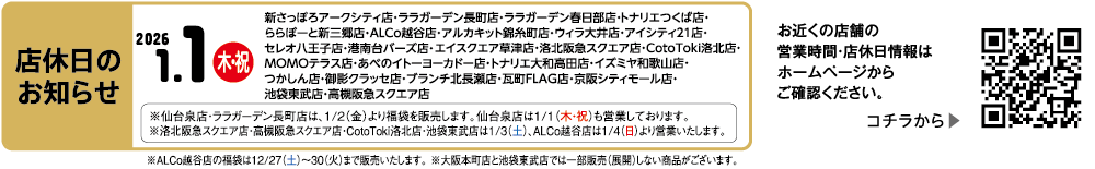 株式会社赤ちゃん本舗(本社:大阪市中央区 https://www.akachan.jp)は、2025年12月27日(土)から2026年1月4日(日)まで、全国のアカチャンホンポで『福袋』を数量限定で販売いたします。