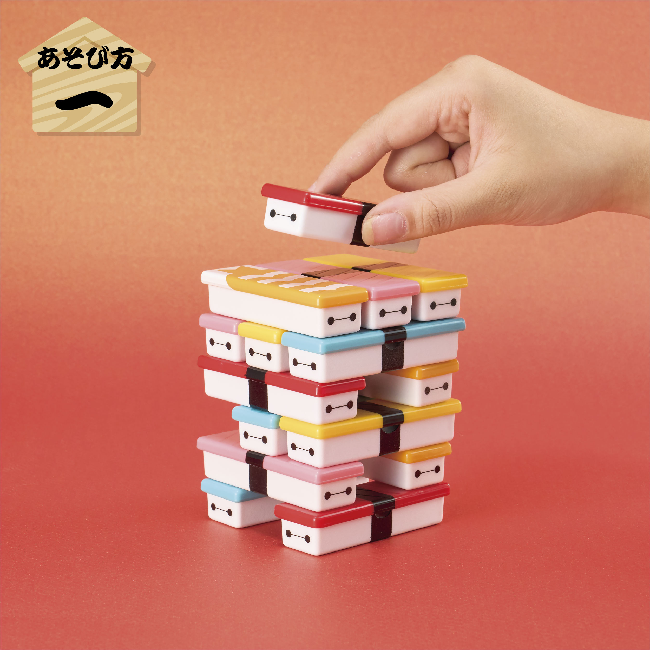 2人同時に急いで寿司ピースを8個積み上げましょう!一番上にベイマックスピースを先に乗せられた人の勝ちです!