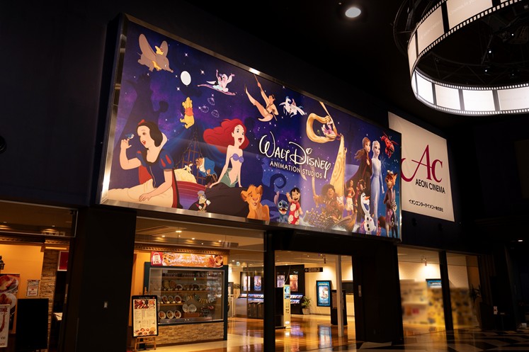 イオンエンターテイメントは、2025年1月、ウォルト・ディズニー・ジャパン株式会社のご協力のもと、ディズニーの豊かなストーリーテリングを象徴する4ブランドの「オリジナルアート シーニック」(巨大壁画)を全国24劇場に掲出することを発表しました。これまでに「ディズニー」、「ピクサー」、「スター・ウォーズ」の個性豊かなキャラクターが鮮やかに描かれたイオンシネマ限定の3種類のアート シーニックが劇場ロビーに登場し、多くのお客さまにお楽しみいただいています。