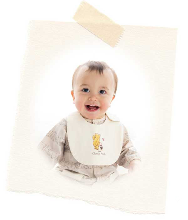 2000年のブランドデビューの年に発表された、世代を超えて愛される「Classic Pooh」のキャラクターたちが描かれたベビーウェアが、復刻登場いたします。