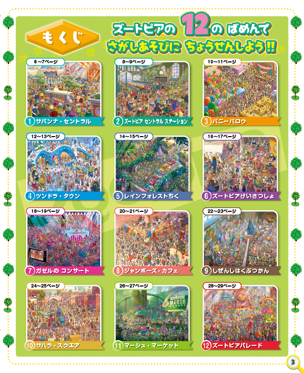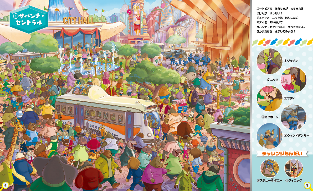 ディズニー映画最新作『ズートピア2』の新しいキャラクター、ゲイリーやパウバートも登場! ズートピアの12のスポットでさがし遊びに挑戦! シンプルな遊び方×緻密なイラストで、子どもから大人まで楽しめる。