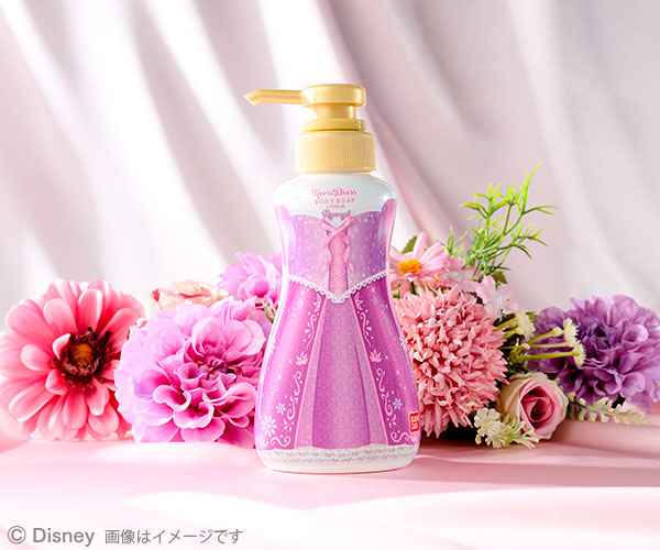ラプンツェルのドレスのようなボトルには、フラワーパフュームの華やかな香りのボディソープを詰め込み、優雅なバスタイムへと導きます。