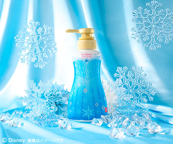 エルサのドレスをイメージしたボトルには、スノーパフュームのさわやかな香りのボディソープを詰め込み、贅沢なバスタイムへと導きます。