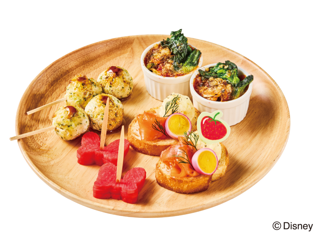 メニューには、ミッキーマウスやミニーマウスをはじめとするキャラクターの世界観やストーリーを反映し、大人も子供もお楽しみいただける「おいしさ」と、ディズニーの世界観を通じた「楽しさ」を掛け合わせた食体験をご提案いたします。