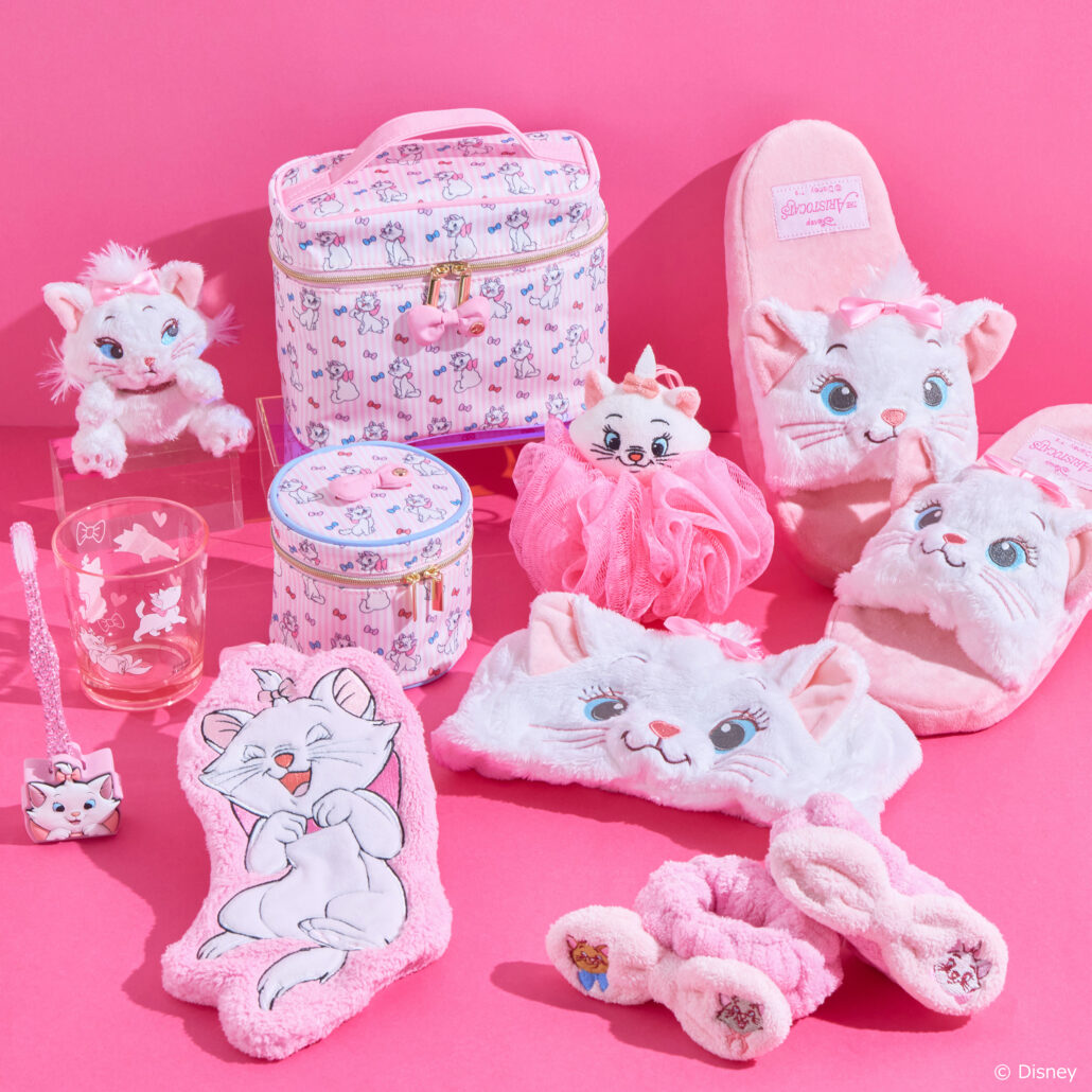 さらに、シンデレラの『ルシファー』をはじめ、おしゃれキャットの『マリー』、わんわん物語の『レディー』といった、愛らしい“イヌネコ”キャラクターたちのアイテムも、特別なピンクデザインでラインアップ!ポーチやストラップ、ステーショナリー類をはじめ、ランドリーグッズやバスグッズまで、毎日が楽しくなる実用的なアイテムが充実しています。