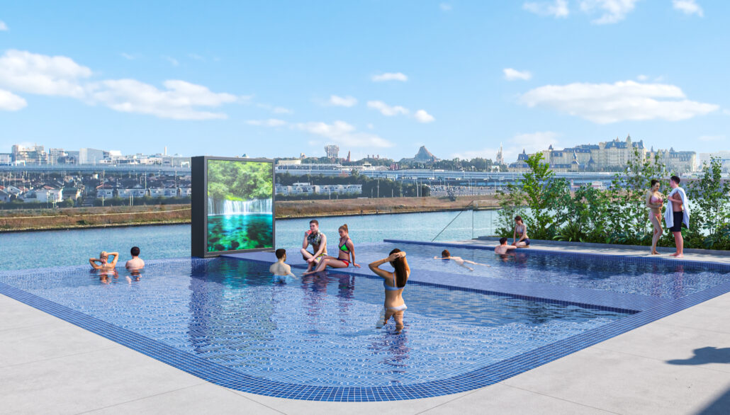東京湾岸エリアを一望する開放的なロケーションで、昼はファミリーやご友人同士でも楽しめるデイプール、夜は大人向けのナイトプールとして(18歳以上限定)、特別な時間を提供いたします。