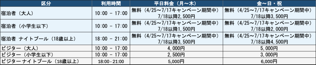•デイプール、ナイトプールともに無料でご利用いただけます。